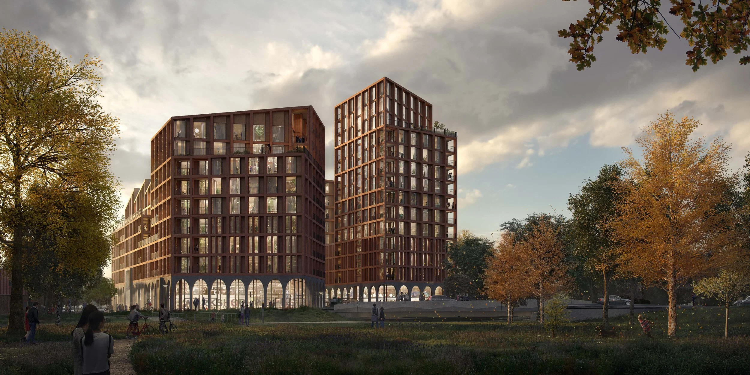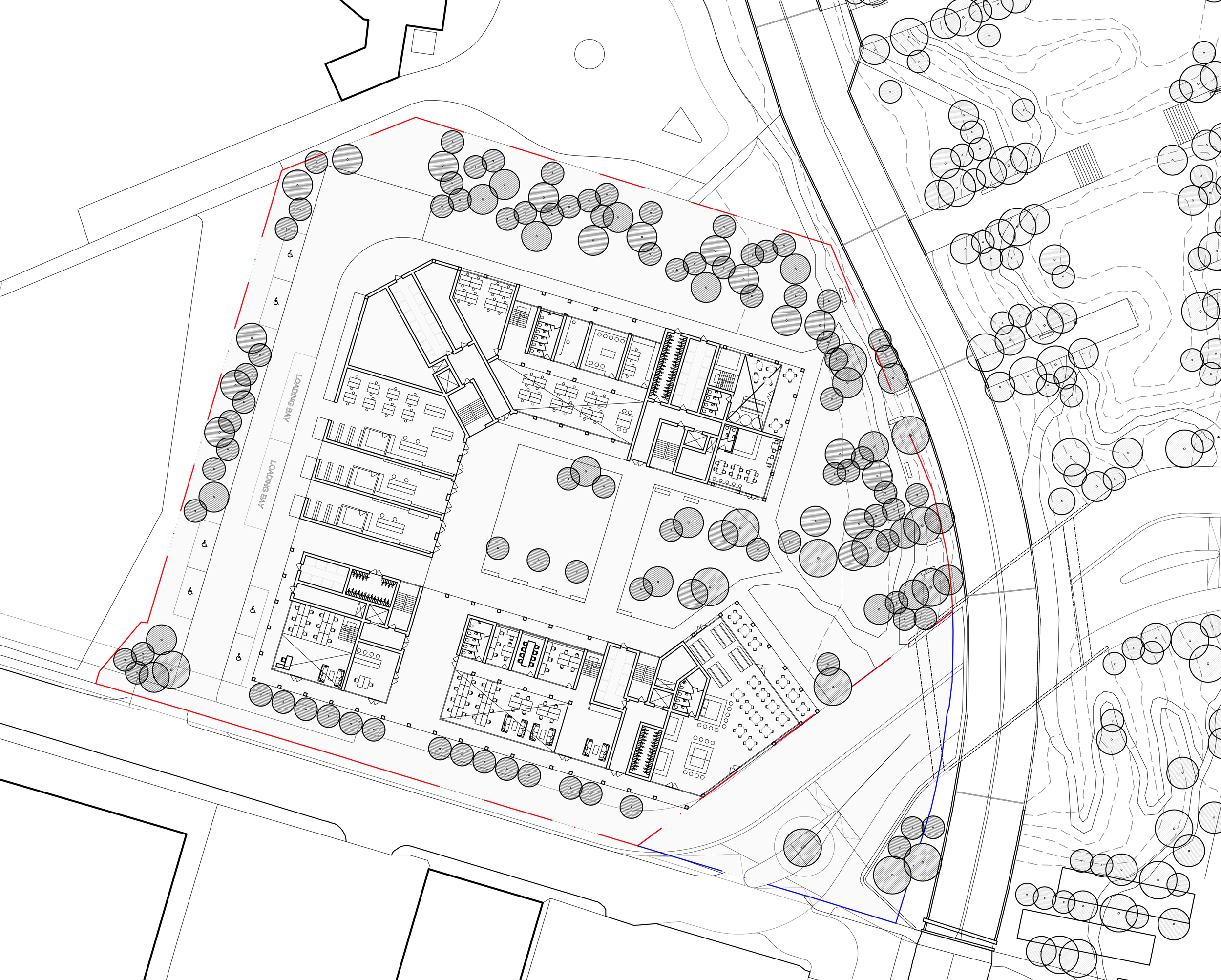 The workspaces are arranged around an open landscaped courtyard which opens onto the naturalised brook and Brooks Park to create a social hub in the centre of the building. With a range of types of workspace, such as workshop spaces, offices and other creative uses.