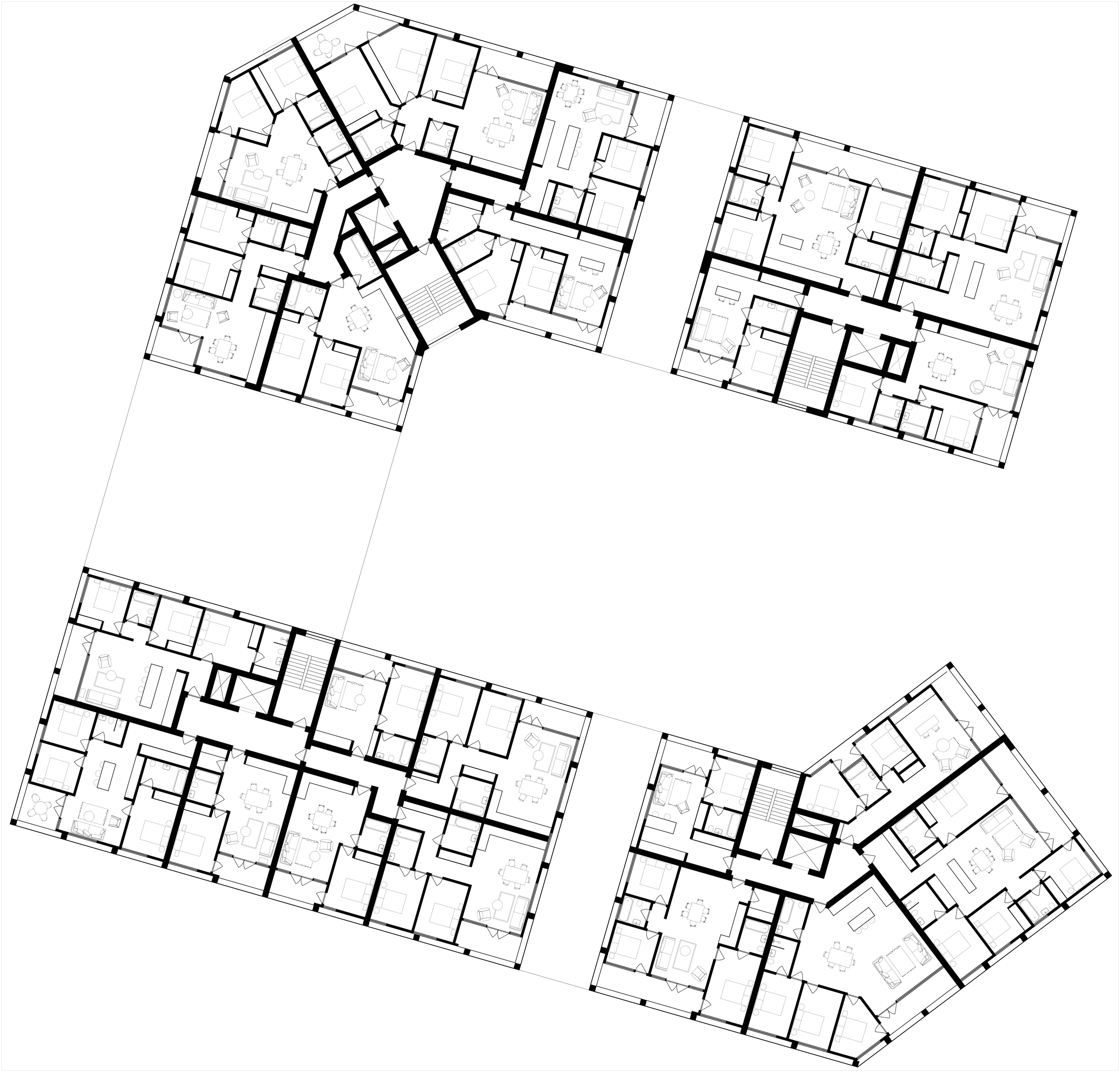 Dual aspect appartments from single lift and stair cores