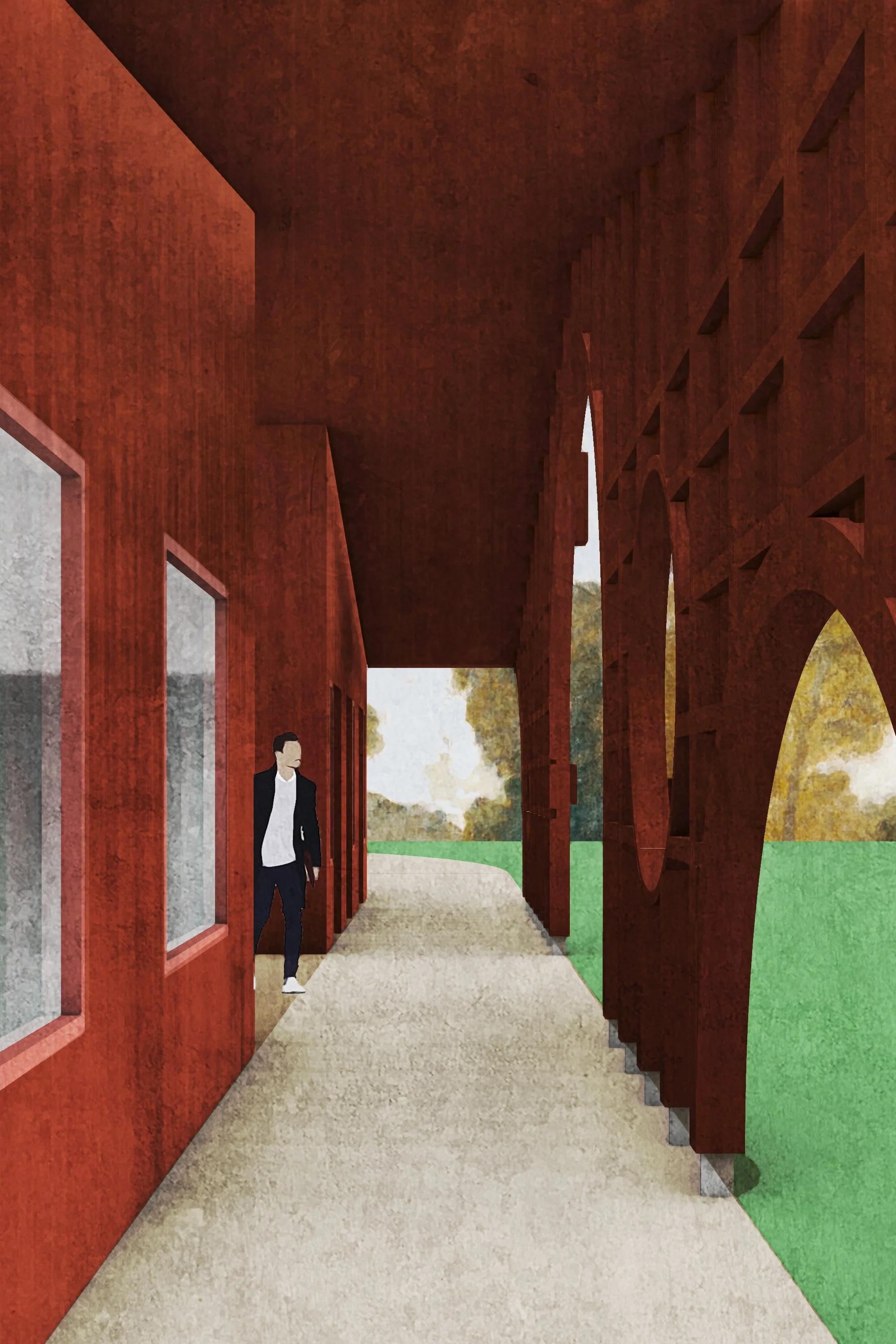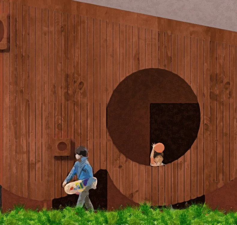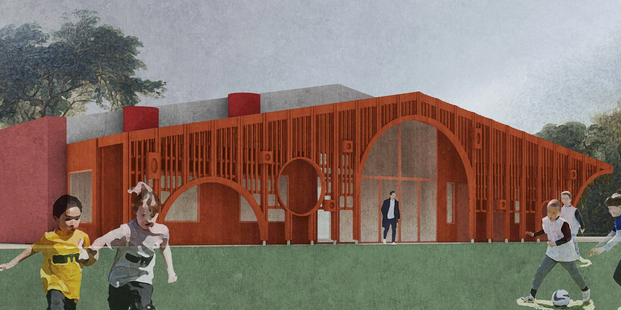 The design combines ideas about traditional lace making from Bedford, storytelling and playfulness. These themes were extrapolated into the framework of the extension’s facade - creating interesting views in and out, a connection between the landscape and the teaching spaces and social spaces for children to sit and chat and watch sports.