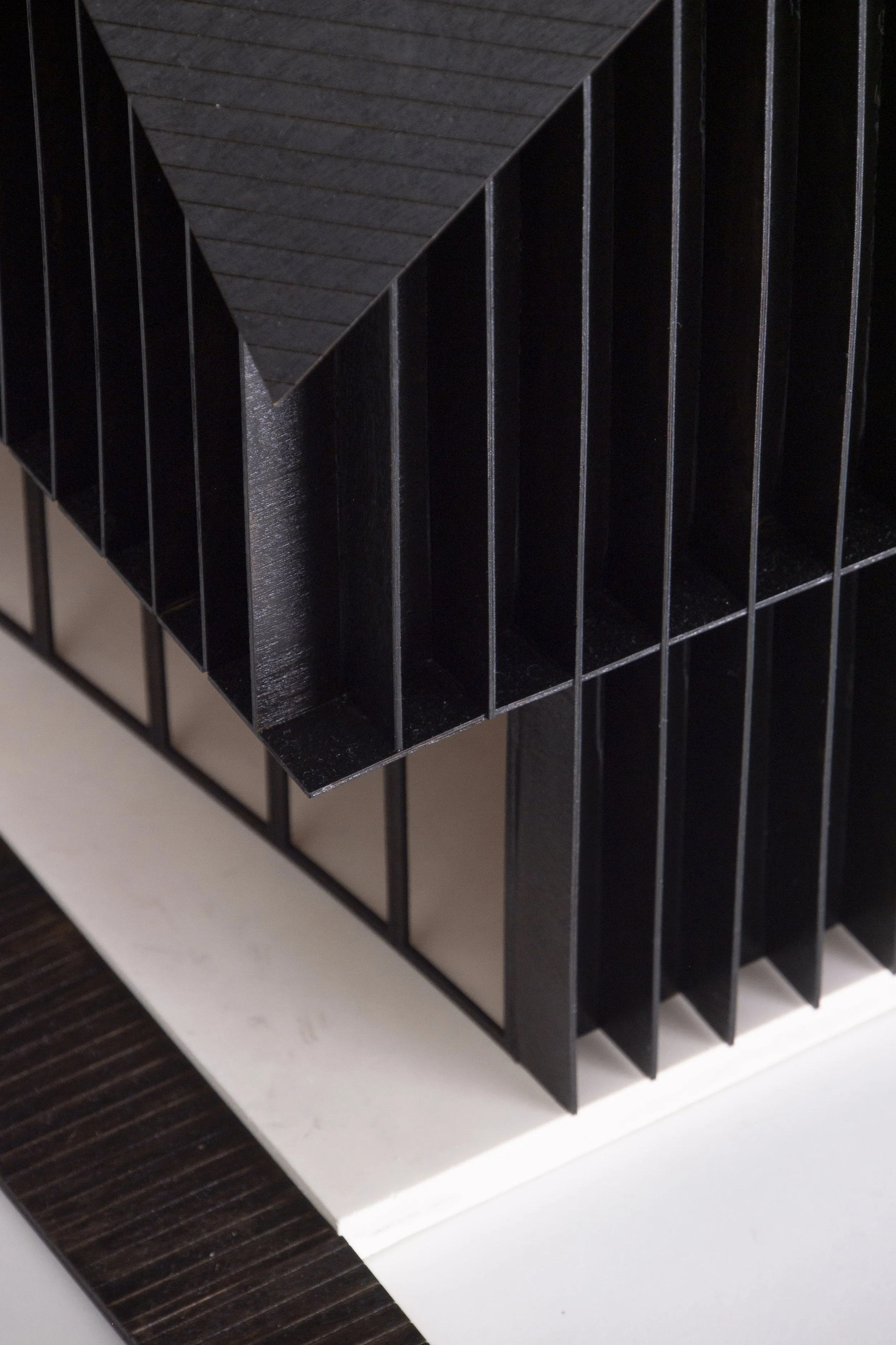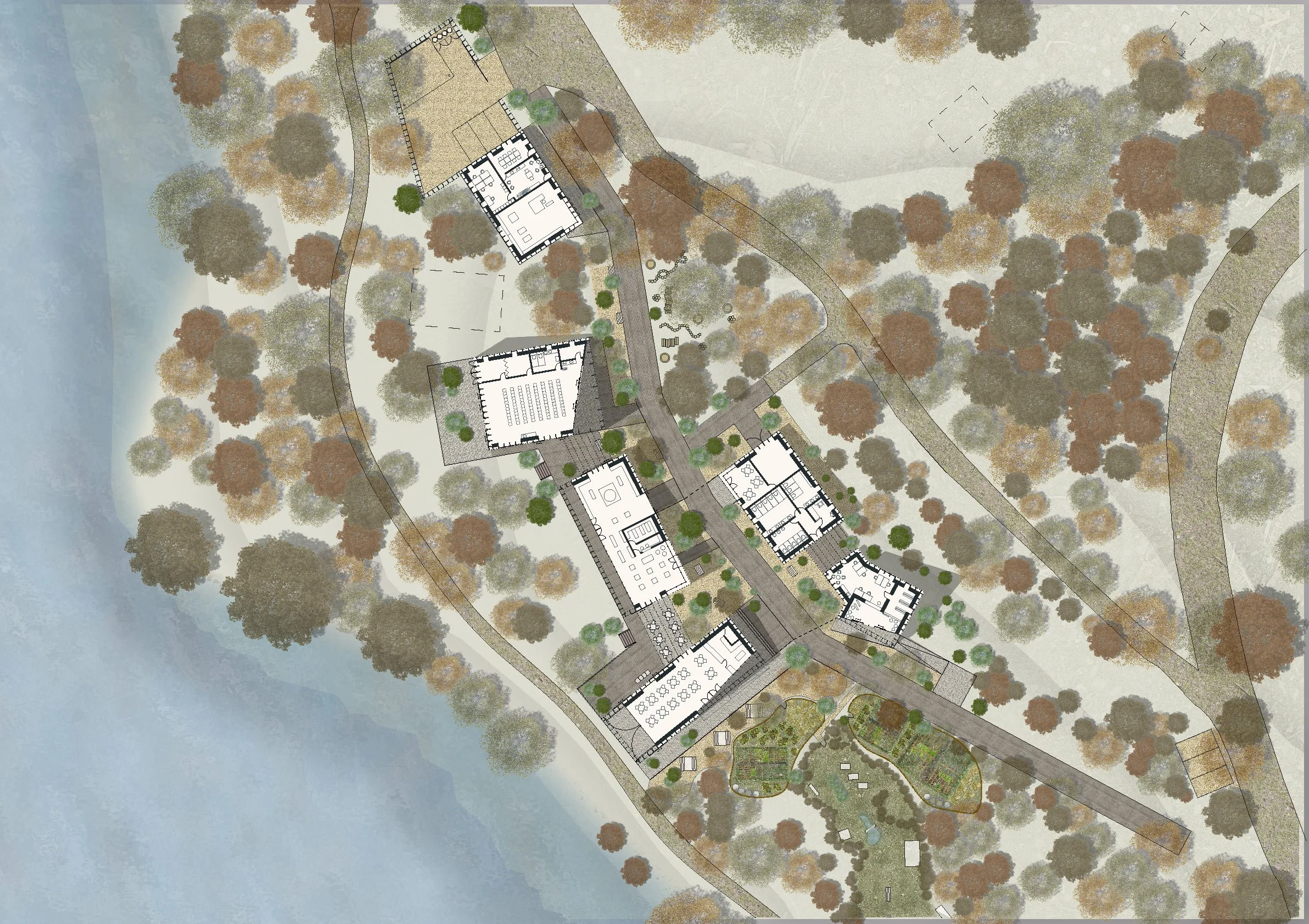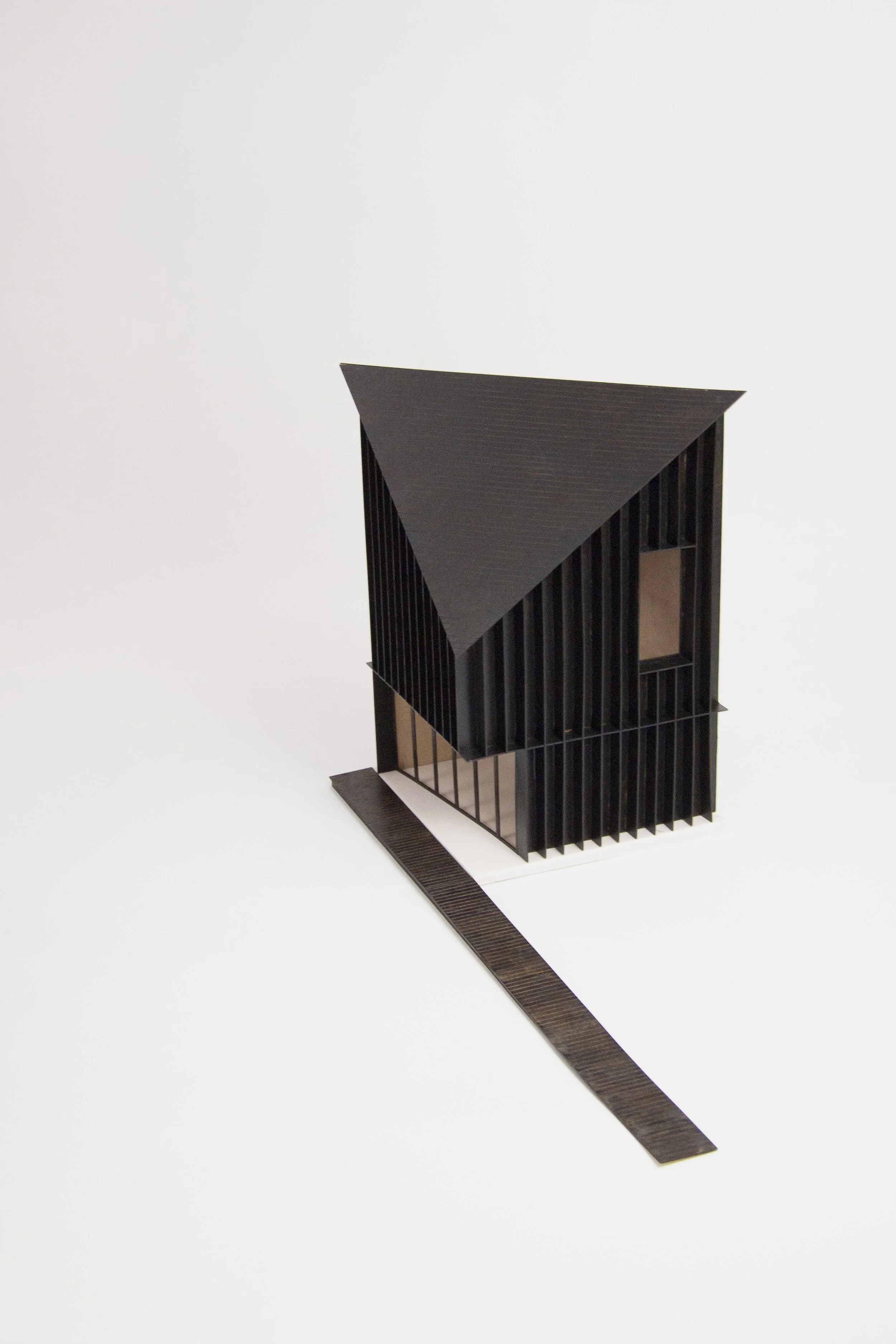 The buildings mediate between people and the nature reserve beyond - shielding from the elements whilst also protecting the wildlife beyond. They are modelled on the hide structures dotted around the nature reserve. Designed to hide the people inside from the reserve. Simple timber structures with small openings and focussed views.