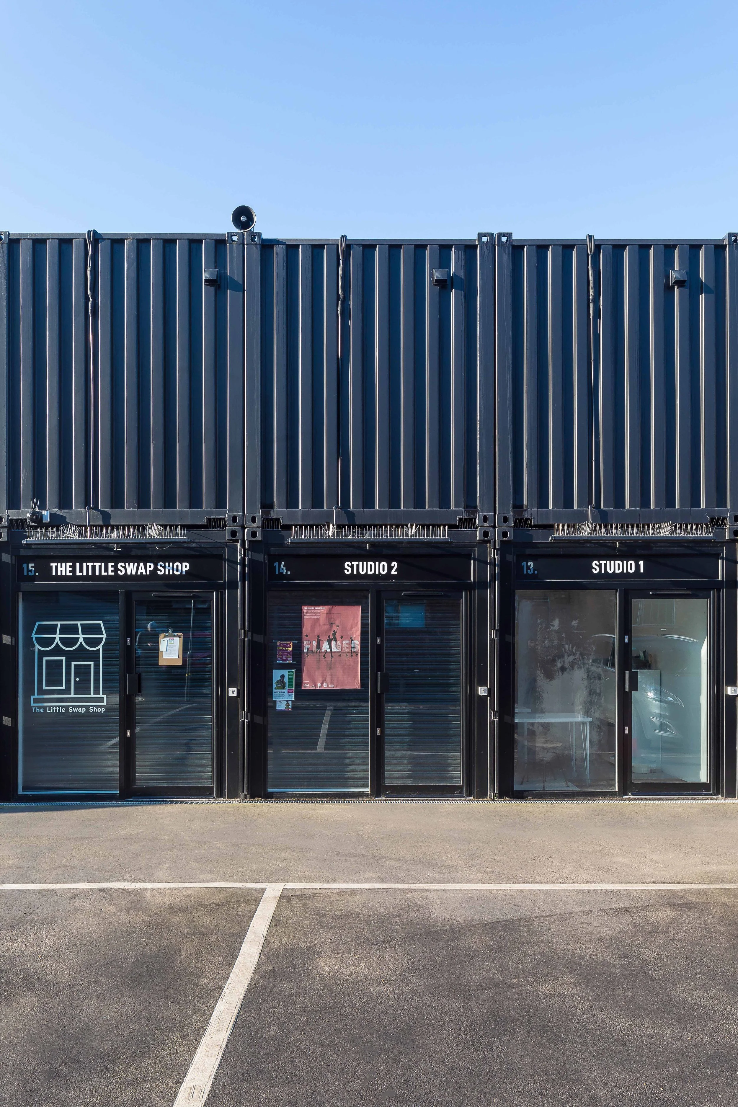 The smallest units occupy half a shipping container - creating a very affordable start up space which has a shop window to customers. Over time, the array of different units sizes means that businesses can flex and adapt as they choose. With more established businesses occupying 3-4 container sized units.