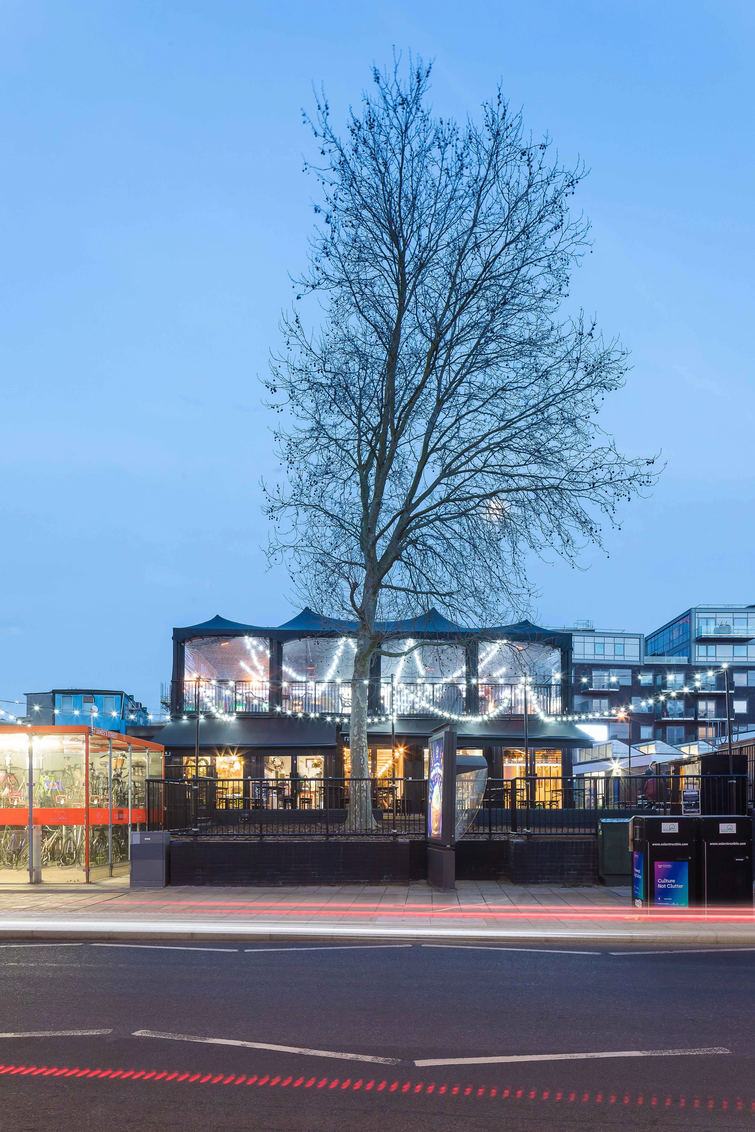 St James Street is a community of start up businesses on a disused car park site in Walthamstow, London. The building provides affordable workspace and support for start ups with breakout social spaces, catering for events and pop-ups.