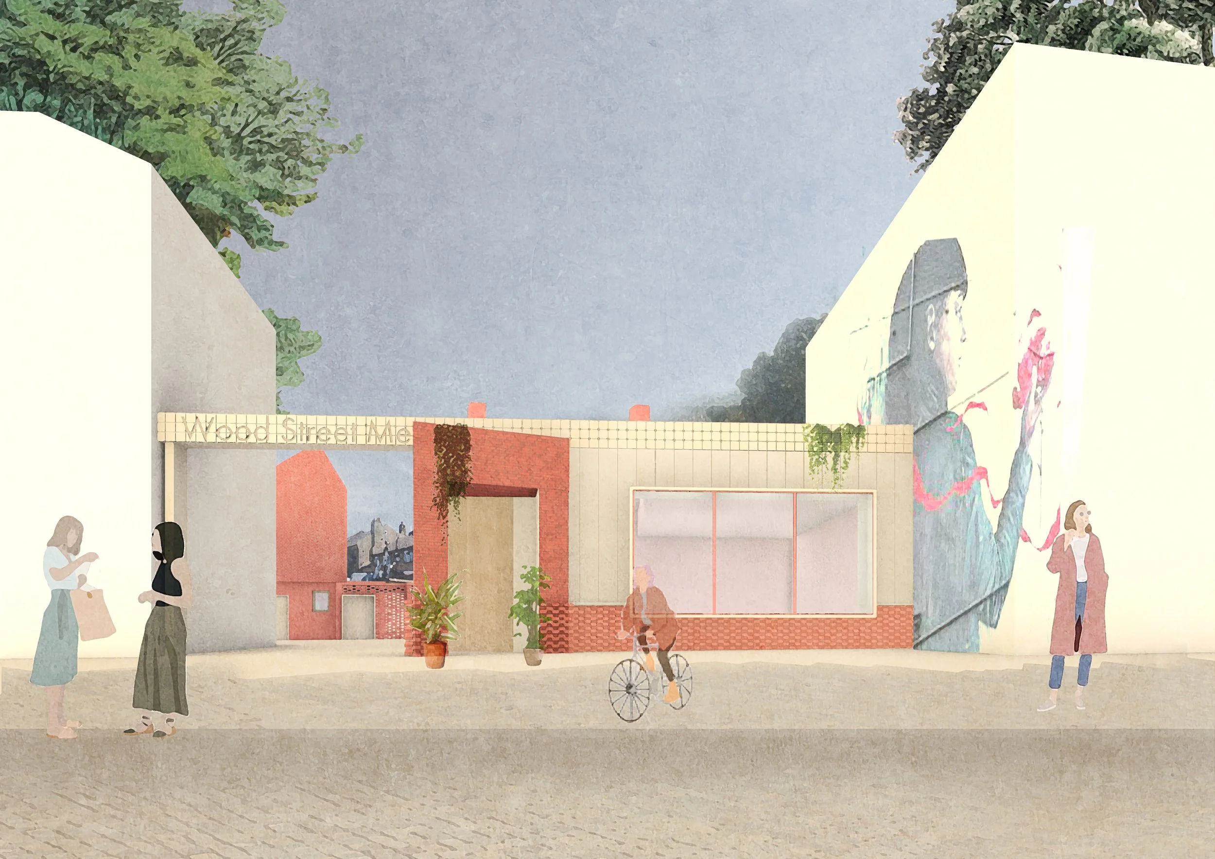 The mews sits behind Wood Street in Walthamstow; a bustling street of independent shops, cafes and pubs punctuated with expressive wall murals of the Wood Street Walls project.